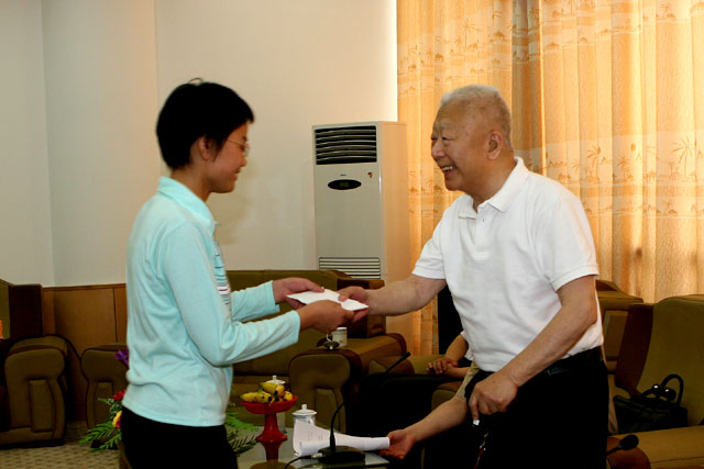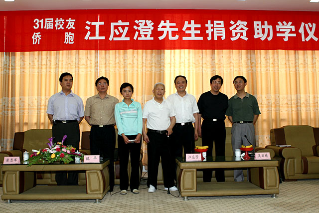 6月19日上午,國際著名地理學家、美籍華人江應澄教授在市委、市政府有關領導的陪同下,來我校捐資助學,資助應屆貧困畢業生升入大學就讀。經過各方比較和篩選,高三(6)班馬杏宇同學幸運的成為資助對象。