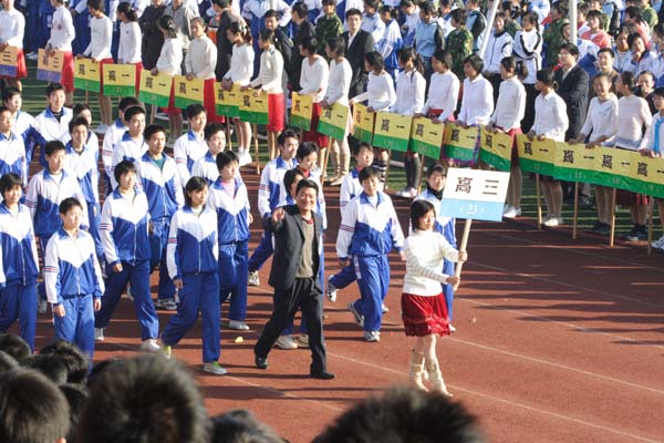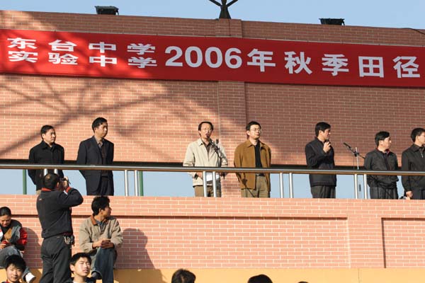 27日上午7時(shí)許,沈山劍副校長(zhǎng)宣布江蘇省東臺(tái)中學(xué)、東臺(tái)市實(shí)驗(yàn)中學(xué)2006年秋季田徑運(yùn)動(dòng)會(huì)開始。隨即,盛況空前的入場(chǎng)式在歡快的樂(lè)曲聲中有序地進(jìn)行。高、初中部136個(gè)代表隊(duì)各自展示了班級(jí)的精神風(fēng)貌。八時(shí)整,吳學(xué)錄副校長(zhǎng)宣布運(yùn)動(dòng)會(huì)開幕,鄒施凱副校長(zhǎng)致開幕詞,在裁判員代表、運(yùn)動(dòng)員代表先后發(fā)言后,裁判長(zhǎng)宣布比賽注意事項(xiàng),比賽正式開始。