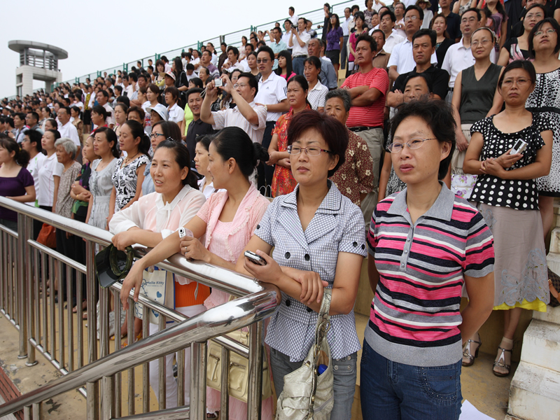 (宣布:江蘇省東臺中學2010級高一新生入學教育暨軍訓動員大會現在開始,升旗)