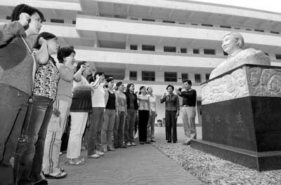 年輕教師在南京斯霞老師紀念館前莊嚴宣誓:學習前輩樹師德。(新華社資料圖片)