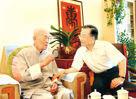 溫家寶親切看望季羨林、錢學森和何澤慧