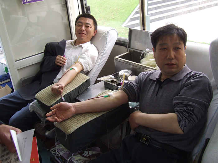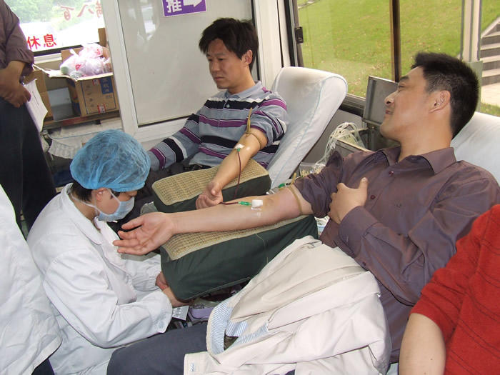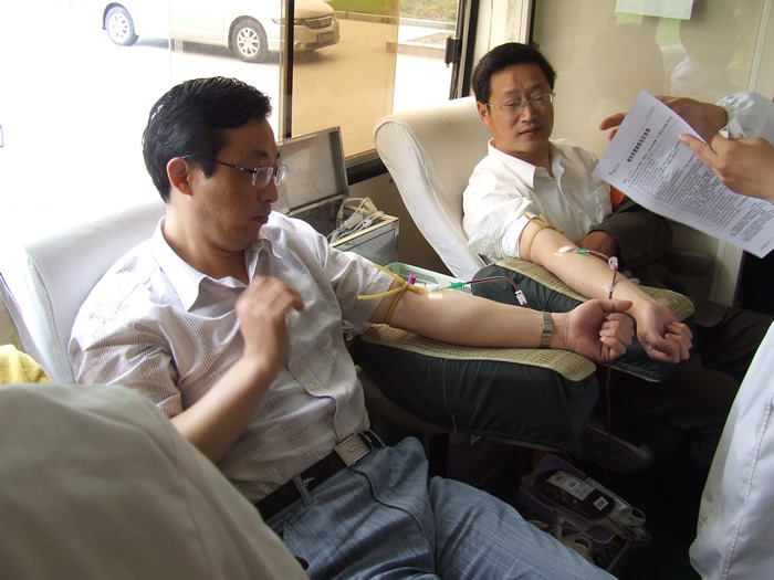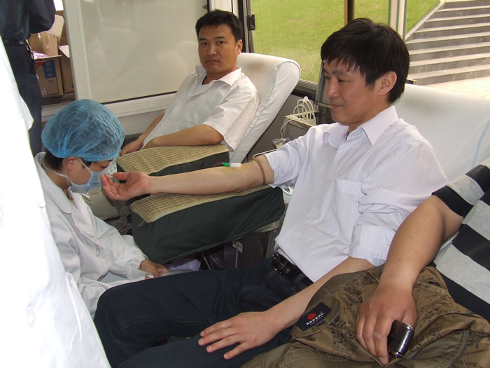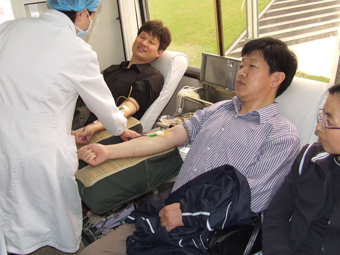 上午八點,當(dāng)市獻血辦的采血車開進東中校園時,許多渴望奉獻愛心的教職工早早等候在預(yù)定地點。他們在醫(yī)生的引導(dǎo)下,依次填表、驗血、采血。粗長的針頭插入他們的手臂,一滴滴包含愛心的鮮血流進了血液袋,他們的臉上依然蕩漾著幸福的微笑。他們中既有剛參加工作的青年教師,年齡剛剛20出頭,也有從教多年的中年教師,個別教師已經(jīng)達到了這次獻血年齡的上限;既有女教師,也有男教師;既有學(xué)校行政干部,也有后勤職工。很多教職工一次獻血就達400毫升。在獻血隊伍中,除已報名參加無償獻血的外,還有不少同志被現(xiàn)場的氣氛所感染,臨時決定加入獻血隊伍。有不少同志走下獻血車,片刻都沒有休息,又匆匆趕往自己的工作崗位,令在場的醫(yī)務(wù)人員感動不已。