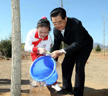 胡錦濤在參加首都義務(wù)植樹活動時強(qiáng)調(diào) 大力弘揚植綠護(hù)綠愛綠的文明新風(fēng)
