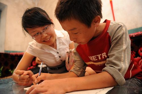 圖為貴州省赫章縣特崗教師鄭倪星在假期為學(xué)生輔導(dǎo)功課。新華社記者 劉續(xù) 攝