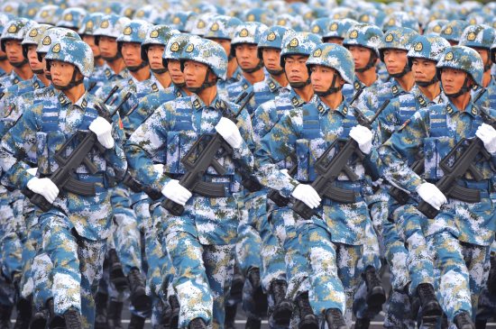 ?。保皶r(shí)37分,閱兵分列式開(kāi)始。在鮮艷的八一軍旗引領(lǐng)下,陸軍學(xué)員方隊(duì)、水兵方隊(duì)、空降兵方隊(duì)、二炮學(xué)員方隊(duì)、三軍女兵方隊(duì)、武警方隊(duì)、預(yù)備役方隊(duì)、女民兵方隊(duì)等14個(gè)徒步方隊(duì),邁著整齊步伐動(dòng)地而來(lái)。他們均來(lái)自戰(zhàn)功卓著的英雄部隊(duì)和在完成抗震救災(zāi)、反恐維穩(wěn)、國(guó)際維和等任務(wù)中表現(xiàn)出色的英模集體。受閱官兵主體是改革開(kāi)放后出生成長(zhǎng)的新一代官兵,顯示了我國(guó)國(guó)防和軍隊(duì)建設(shè)事業(yè)的勃勃生機(jī)。