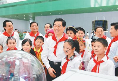 新華社北京5月31日電 在“六一”國際兒童節(jié)到來之際,中共中央總書記、國家主席、中央軍委主席胡錦濤31日上午來到中國科技館新館,同出席即將在京召開的中國少年先鋒隊第六次全國代表大會的全體小代表和部分中外少年兒童一起參加“體驗科學、快樂成長”活動。胡錦濤代表黨中央,向出席少代會的小代表、向全國各族少年兒童表示節(jié)日的祝賀,向廣大少先隊輔導員和少年兒童工作者表示崇高的敬意,預祝第六次少代會取得圓滿成功。