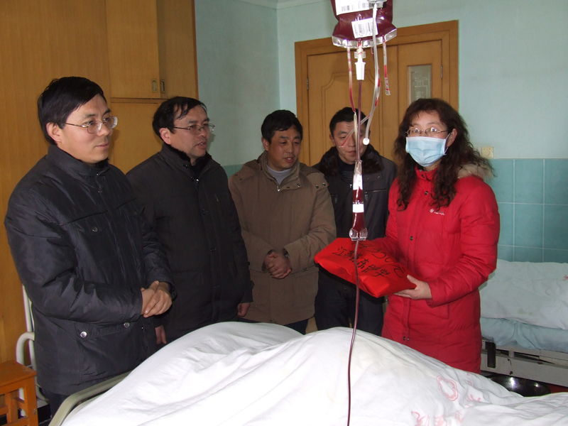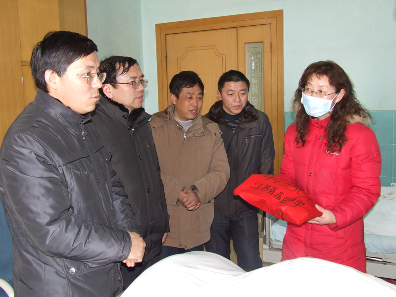2月22日下午,江蘇省東臺中學師生代表一行5人來到市人民醫院病房,將4萬4千多元的第一批捐款送到患白血病的呂游同學的親屬手中,并送去全校師生對呂游同學良好的祝福,叮囑呂游同學要堅定信心,渡過難關,戰勝病魔,重返校園。