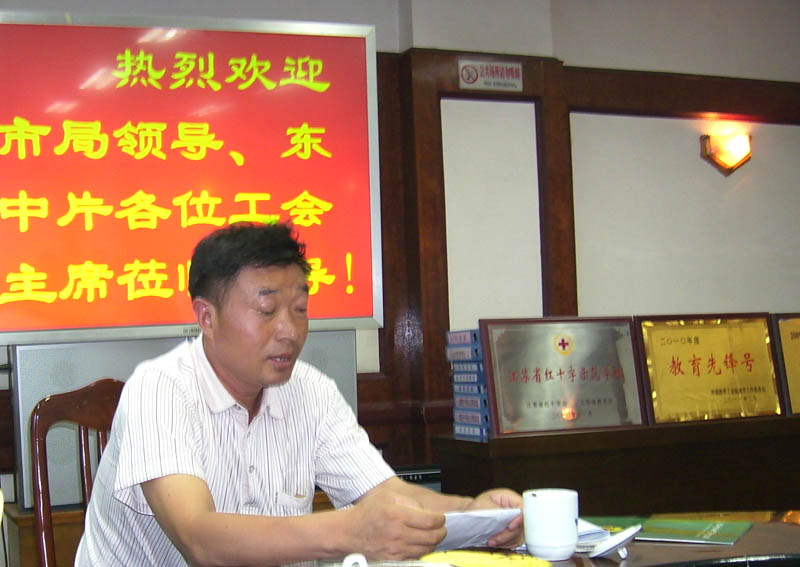 2011年第二季度“東中片”工會(huì)主席會(huì)議7月5日在實(shí)驗(yàn)中學(xué)舉行。會(huì)議由省東臺(tái)中學(xué)工會(huì)主席朱曉明主持。實(shí)驗(yàn)中學(xué)副校長崔健首先致歡迎詞并介紹了學(xué)校發(fā)展情況,實(shí)驗(yàn)中學(xué)、范公中學(xué)、梁垛中學(xué)、省東臺(tái)中學(xué)等基層學(xué)校工會(huì)介紹了二季度以來、特別是開展慶祝建黨90周年活動(dòng)的情況以及暑期活動(dòng)計(jì)劃,會(huì)議期間,片上各基層工會(huì)主席還觀看了實(shí)驗(yàn)中學(xué)工會(huì)的資料臺(tái)檔,最后,市教育工會(huì)主席劉亞平、副主席胡維友部署了下一階段工作,并對(duì)基層工會(huì)今后的工作提出了要求。