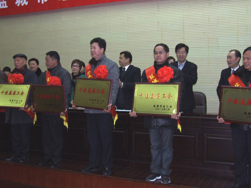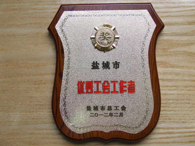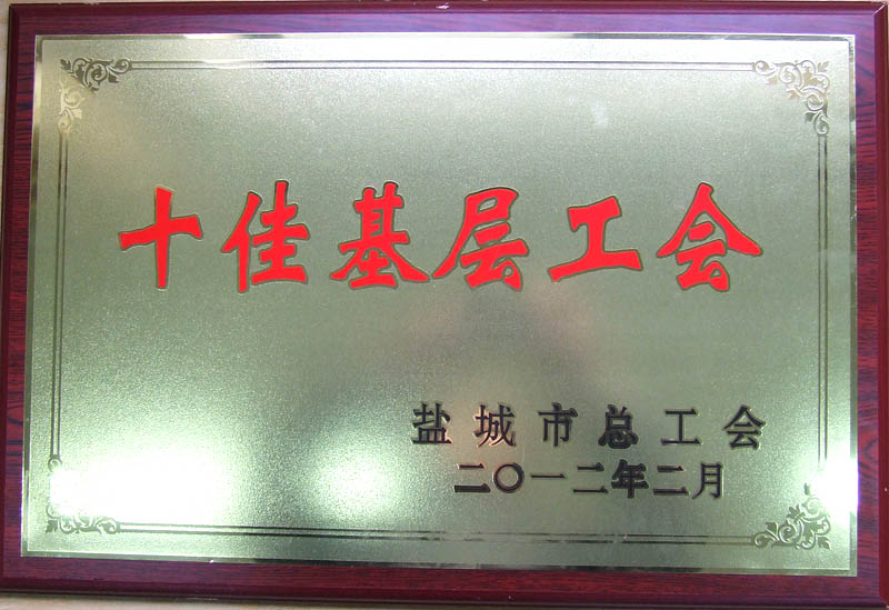 學校工會榮獲鹽城市“十佳基層工會”稱號的獎牌