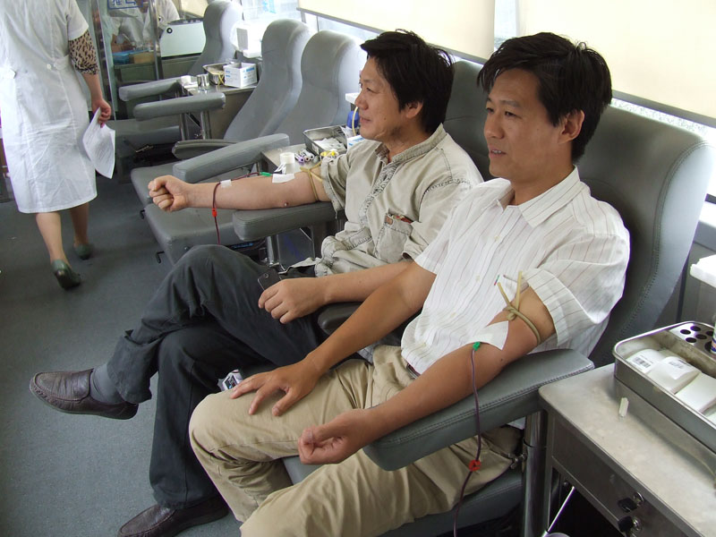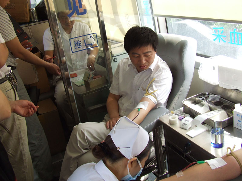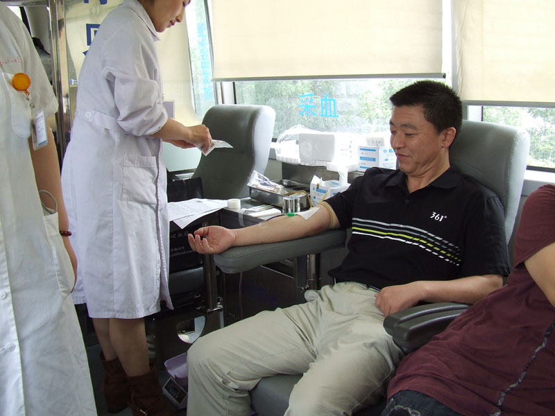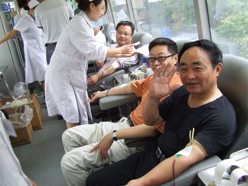 5月下旬學(xué)校工會就向全體教職工發(fā)起了無償獻(xiàn)血的倡議,鼓勵廣大教職工積極參與這項有意義的活動,倡議得到了廣大員工的積極響應(yīng),短短一周就有80多名員工表達(dá)了無償獻(xiàn)血的意向。活動當(dāng)天,在學(xué)校工會的組織下,教職工們整齊有序地排隊,依次填表、體檢、驗血型、注冊、采血……學(xué)校領(lǐng)導(dǎo)干部走在隊伍最前面,廣大教職工緊緊跟上,一切都有條不紊地進(jìn)行著。他們中有學(xué)校副校長、處室負(fù)責(zé)人,有從教多年的中年教師,有剛參加工作的青年教師,也有后勤職工。一些因為工作忙沒來得及提前報名的教職工備受感染,也紛紛加入獻(xiàn)血隊伍。他們當(dāng)中有的已是數(shù)次無償獻(xiàn)血的積極分子,還有吳春南老師帶著妻子、兒子一同來獻(xiàn)血,更是讓人感動。一袋袋鮮血液凝聚赤誠的愛心,一片片真情點(diǎn)燃生命的希望。不少高三教師已報名參加獻(xiàn)血因高考后放假在外地未能獻(xiàn)血表示十分遺憾。獻(xiàn)血后,大家都主動放棄休息,回到工作崗位堅持上班,他們的精神不禁讓人肅然起敬。