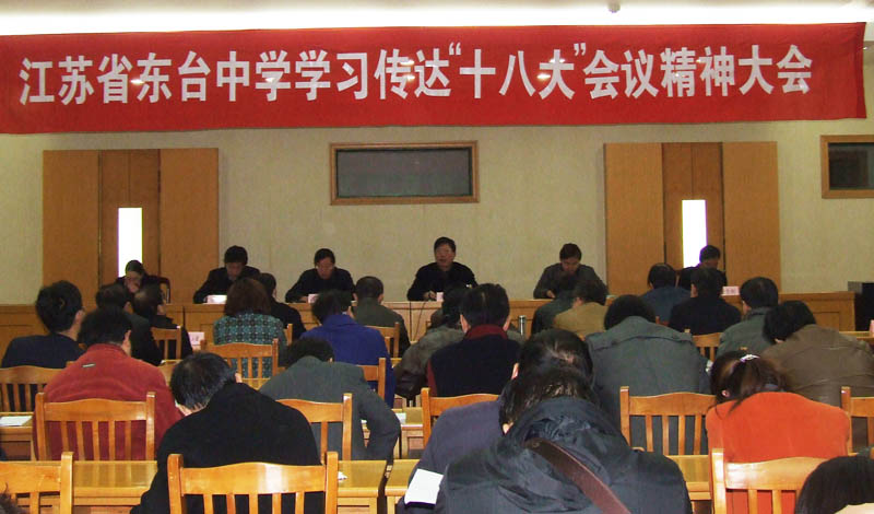 11月19日下午,黨委副書記李克剛主持召開全校黨員、干部會議,傳達學習黨的十八大精神。校長、黨委書記王兆平就大會的主要情況、十八大報告的形成過程和主要內(nèi)容、修改黨章的情況、中央紀委工作報告的主要內(nèi)容和學習貫徹十八大精神需要領(lǐng)會和把握的重點等作了傳達,并對全校學習貫徹十八大精神提出了要求。此后,我校在櫥窗、電子顯示屏、校園網(wǎng)站等陣地辟了宣傳內(nèi)容,圍繞學習重點豐富了國旗下的講話內(nèi)容。各班級召開主題班會,各黨小組、學習組在集中學的基礎(chǔ)上認真自學,并撰寫心得體會。在學習宣傳的同時,我校結(jié)合學校發(fā)展的思路和教育工作的實際,從三個方面貫徹落實十八大精神,即:不斷創(chuàng)新發(fā)展思路,堅持科研興校;創(chuàng)新管理模式,堅持育人為本;創(chuàng)新課堂教學,追尋理想課堂。