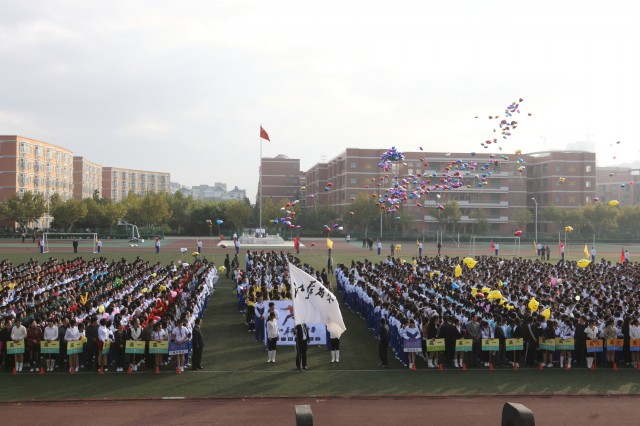 25日早晨,城東校區高一(1)班、(2)班100多名師生準時來到北海校區體育運動場,參加在這里舉行的田徑運動會入場式和開幕式。