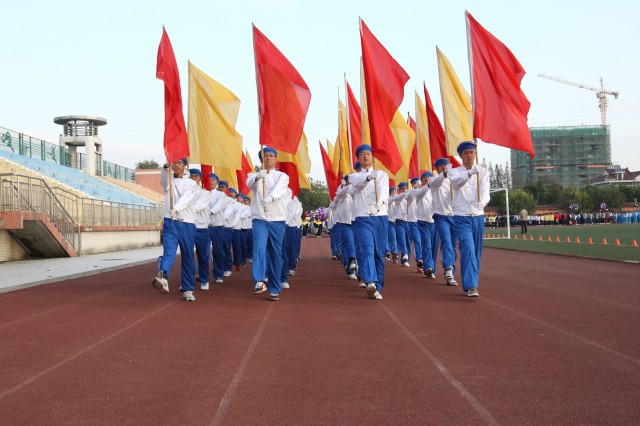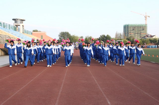 七時五十分,田徑運動會開幕式舉行。在升旗儀式結束后,校長、黨委書記王兆平宣布我校2013年秋季田徑運動會開幕,副校長謝謙云致開幕詞,裁判員代表、體育組魯老師和運動員代表、高二(13)班顧紅同學宣誓,裁判長宣布比賽注意事項。八時整,運動員退場,比賽正式開始。