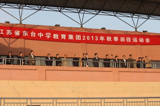 26日上午七時半,校領導王兆平、謝謙云、楊曉翔、趙志剛、吳海霞參加由城東校區高一年級組織的田徑運動會入場式和開幕式。副校長楊曉翔主持。入場式上,20個班級方陣洋溢著青春的活力,展現出新校區第一批學生嶄新的精神風貌。校長、黨委書記王兆平在開幕式發表了講話。他介紹了百年東中的歷史,希望同學們繼承優良傳統,銘記“勤”的校訓,刻苦學習,為實現“中國夢”而不懈地努力。