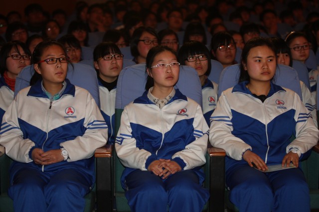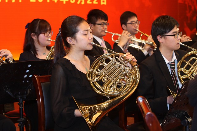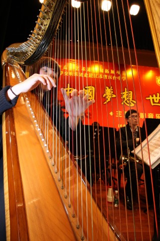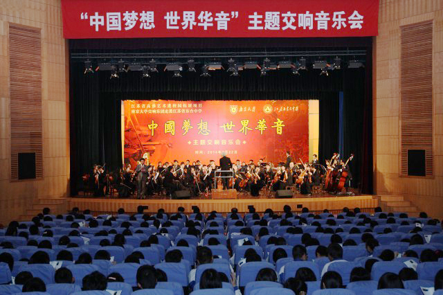 3月22日下午,江蘇省東臺中學禮堂管樂齊鳴,該校一千三百多名師生在這里觀看由南京大學交響樂團演出的“中國夢想•世界華音”主題交響音樂會。
