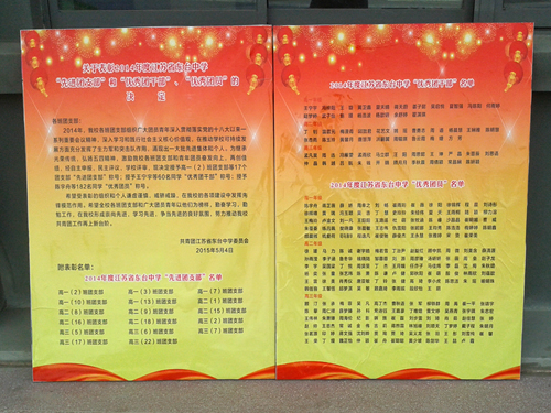 會上,校團委曹江書記宣布了《表彰決定》,對高一(2)班團支部等17個“先進團支部”、王寧宇等60名“優秀團干部”、陳宇舟等182名“優秀團員”予以表彰并頒發獎狀和證書。