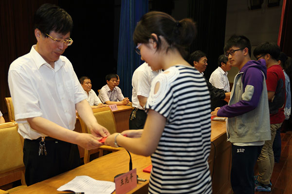 首先,各班代表走上主席臺,接受校領導向本屆高三全體同學頒發的畢業證書。接著,學生代表、高三(19)班季秋晨和教師代表、高三(1)班班主任崔業平相繼發言?!案兄x學校三年來對我們的精心培養,給予我們優越的學習環境和展示自我的舞臺;感謝老師三年中對我們的悉心關愛,給予我們成才的智慧和奮斗的力量……”學生的發言,飽含感恩之情和眷戀之意;“三年中,你們深刻地走進了我們的記憶,并且成為我們生命中的一部分……母校永遠是你們避風的港灣,無論你們走到天涯海角,總有老師的牽掛!”教師的發言,深表真誠祝福和殷切期望。