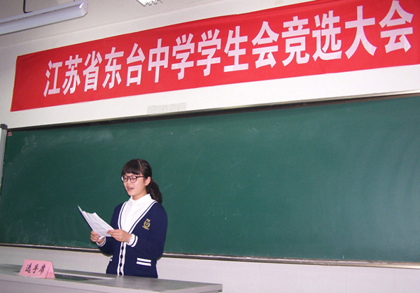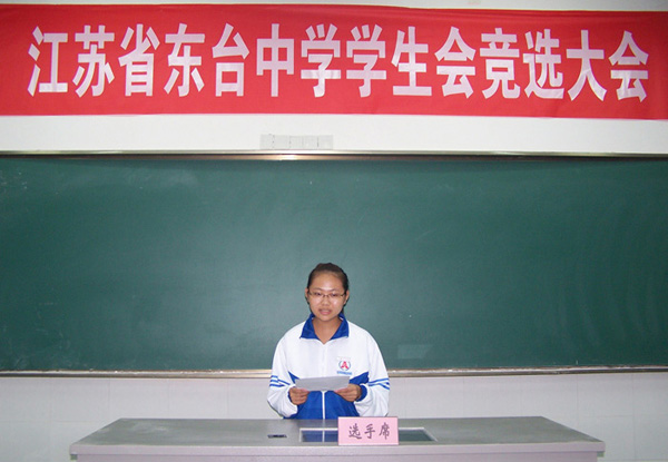 競選大會上,由三個年級的學生分會推薦的30名選手圍繞校學生會主席、副主席、學習部、衛生部、宣傳部、文藝部、體育部、生活部的正副部長等崗位展開了激烈角逐。參與競選的同學通過激情的演講表達了對校學生會發展的科學籌劃與獨到見解,勾勒了各自競爭部門的宏偉藍圖,表現出了東中學子良好的素質和奉獻精神。競選者們信心滿懷而又樸實無華的語言,體現了對校學生會的真摯感情,博得了現場評委和同學們陣陣掌聲。