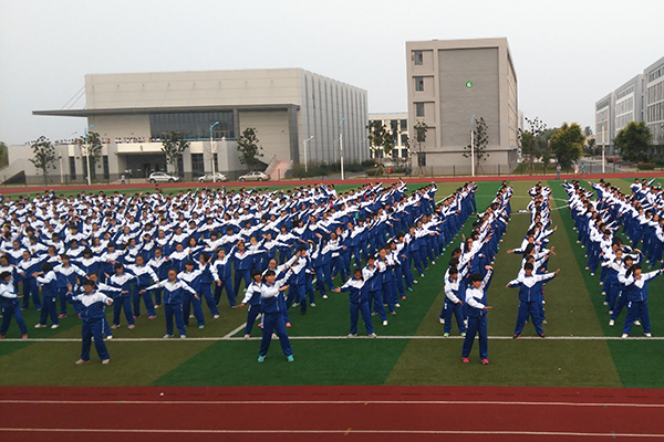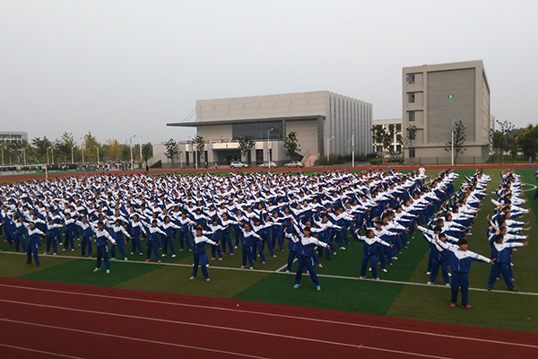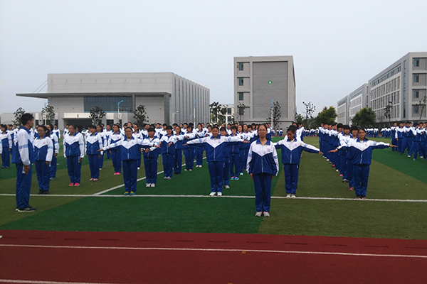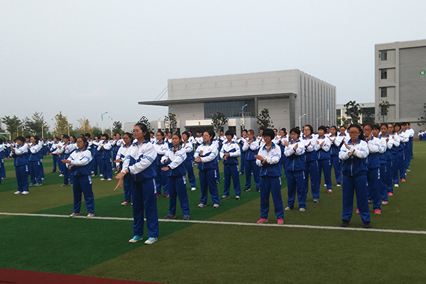 9月21日下午4點20分,我校高一年級全體學生在學校操場舉行廣播操比賽。全年級18個班級以班主任為領隊參加競爭。