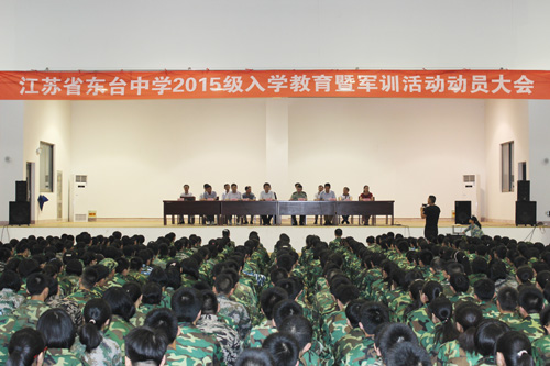動員大會上,首先由鄒校長為高一新生代表頒發了江蘇省東臺中學校徽。他勉勵佩戴上東中校徽的全體高一新生:今天我以東中為驕傲,明天東中以我為自豪。