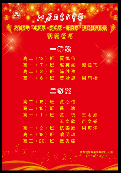 人生如船,夢想是帆。有夢想才有希望,有夢想才有未來。為慶祝建校110周年,貫徹鄒校長提出的“活動育人”的理念,用“中國夢”積聚我校師生團結奮進的“正能量”,展示東中學子的青春活力,由政教處、團委聯合舉辦的2015年“中國夢˙東中夢˙我的夢”詩歌朗誦比賽于