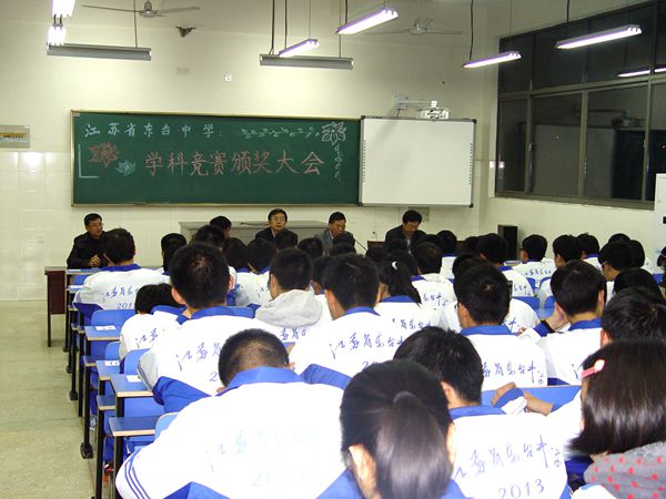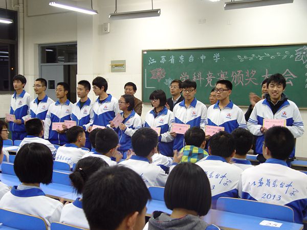 在認真聽取學生、老師代表發言后,校長、黨委書記鄒施凱十分高興的說,今年,我校學科競賽,風生水起,你們為學校屢建殊榮,各學科競賽成績雄居鹽城市前列。獲得如此優異的成績,真的很不容易。你們在校園生動傳遞著把占有知識、不斷學習和能力培養視為人生最大興趣的正能量。這充分體現出東中人敢立潮頭,攀越巔峰、舍我其誰的豪邁激情!鄒施凱強調,這再一次說明,在東中人面前,“不可能”完全可以加一逗號,演變為“不,可能!”同學們蘊涵的巨大潛能,遠遠超過我們已實現的一切。他指出,“勤能煮海,進可登天。”希望同學們在今后的學習中,進一步“讓學引思,以學激思,用學拓思”,滿懷信心、追求卓越,勇于沖刺人生的新目標和新高度!