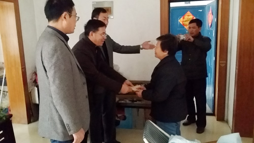 在臺(tái)城怡和花園困難職工王女士家里,謝校長(zhǎng)、余主任面對(duì)面地了解了其生活狀況,并送上慰問(wèn)金,鼓勵(lì)她樹(shù)立生活信心,克服困難。老人十分感謝志愿者關(guān)心,表示會(huì)樂(lè)觀面對(duì)困難,早日改變生活現(xiàn)狀。在濱河居委會(huì)7組楊爹的租住房?jī)?nèi),謝校長(zhǎng)詳細(xì)詢問(wèn)了老人的糖尿病病情、用藥情況、血糖控制水平,并與現(xiàn)場(chǎng)的村干部共同商討生活救助和日常幫扶措施,在送上慰問(wèn)金后,還口頭約定下次服務(wù)時(shí)間,楊爹激動(dòng)得連聲道謝!