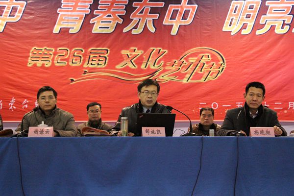 下午4:30時,開學(xué)典禮在雄壯的國歌聲中拉開帷幕。校長、黨委書記鄒施凱作了《勤能煮海、進可登天,努力做一個有文化、敢擔(dān)當(dāng)?shù)臇|中人》主題講話,副校長謝謙云宣讀了2015-2016學(xué)年度第一學(xué)期優(yōu)秀班集體和先進個人的表彰決定。
