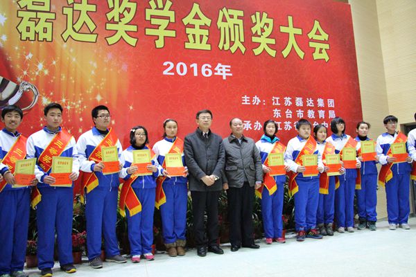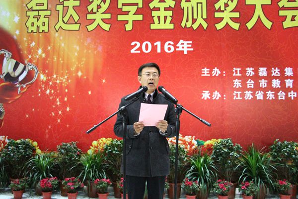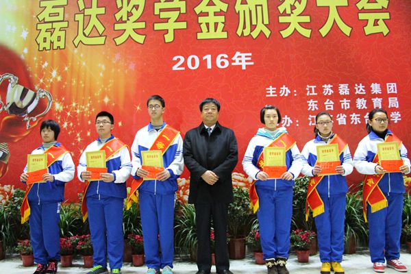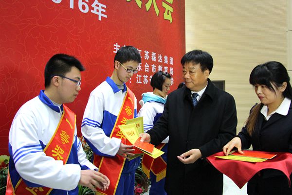江蘇省東臺中學2016年高一年級獎學金考試已新鮮出爐,3月14日下午4:30時,隆重的頒獎大會在東中三樓報告大廳舉行。獲一等獎及二、三等獎的122名同學共同分享了90003元的磊達獎學金!主辦方江蘇磊達集團董事長湯廣宏,東臺市教育局黨委書記、局長王勁松出席頒獎大會并講話,獲一、二等獎的學生家長應邀參加活動。現場氣氛熱烈,為多年來所罕見!