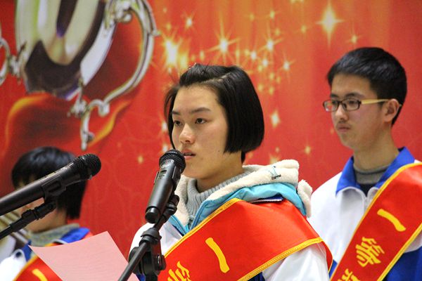 一等獎學金獲得者倪笑代表全體獲獎學生表示,獎學金是對我們取得成績的肯定和表揚,更是對我們的鞭策與鼓勵。我們正值意氣風發、青春飛揚的大好時光,充滿了對未來無限的憧憬和渴望。讓我們牢記“勤能煮海、進可登天”的校訓,以夢想為動力,把勤勉當行囊,心懷感恩,珍惜時光,銳意進取,追求卓越,在屬于我們的星光舞臺上笑語歡歌。相信在兩年之后的考場上,我們一定不會辜負長輩們對我們的殷切期望!