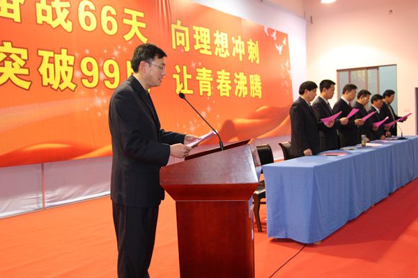 鄒施凱指出,66天會戰(zhàn)的號角已經(jīng)吹響了,同學箭在弦上、蓄勢待發(fā)!老師運籌帷幄、指揮若定!著手當前,我們豪情滿懷;放眼高考,我們志在必得!他慨然而言,這66天,是壓力與競爭的聯(lián)袂轟動,是青春與智慧的聯(lián)手抗爭,是抉擇與奮斗、是破蛹與嬗變!他高度點贊高三全體師生舍我其誰,攀越巔峰的勇氣、銳氣、豪氣和霸氣!激情闡揚只有品嘗“勤能煮海”的千般痛苦、沉得住氣,才能體味“進可登天”的一夢成真、揚眉吐氣這一勵志情懷、人生法則。