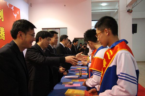 本次誓師大會,為表彰高三年級獎學金考試獲得者,特別增設了“磊達集團獎學金”頒發(fā)儀式。一等獎6人、二等獎15人、三等獎45人共66人。獎額近五萬元。