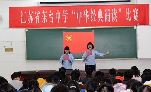 參賽選手們的誦讀形式活潑多樣,有獨誦、對誦、群誦等,誦讀的內容包括了古典詩文和現代詩文等膾炙人口的名篇,參賽作品的內容和題材涵蓋了中華國學的不同歷史時期,表達了東中學子對古典文化的熱愛和對詩歌的理解,部分選手還精心準備了與作品主題相協調的服裝和道具。比賽中,選手們時而如洪鐘鏗鏘有力,時而如細雨輕柔綿長,時而如流水撥動心弦,一篇篇經典美文,在優美的配樂中被選手們精彩演繹,掀起了一陣又一陣的高潮,活動現場精彩不斷,掌聲此起彼伏。
