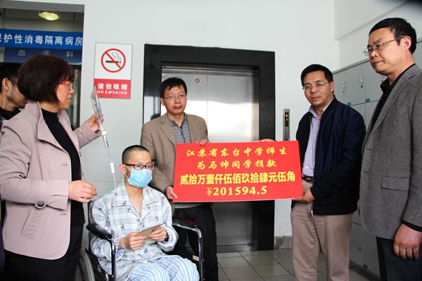 捐款!立即下達決定!政教處、工會和團委聯名發出倡議,號召全校師生獻出一份愛心,匯聚慈善之光,為重癥病房里的馬帥照亮生命之希望、喚起人生之堅強,用東中人的雙臂,為他撐起一片蔚藍的天空……