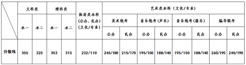 注:一、藝術類校考本科專業錄取最低控制分數線: