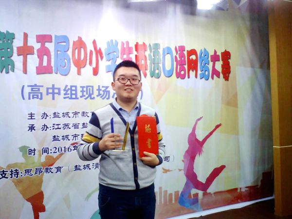 昨天上午,鹽城市第十五屆中學生英語口語大賽決賽如火如荼,江蘇省東臺中學高一(1)班樊宇航同學“完爆”所有選手,榮獲特等獎第一名!并將領銜鹽城市代表隊參加全省中學生英語口語大賽。