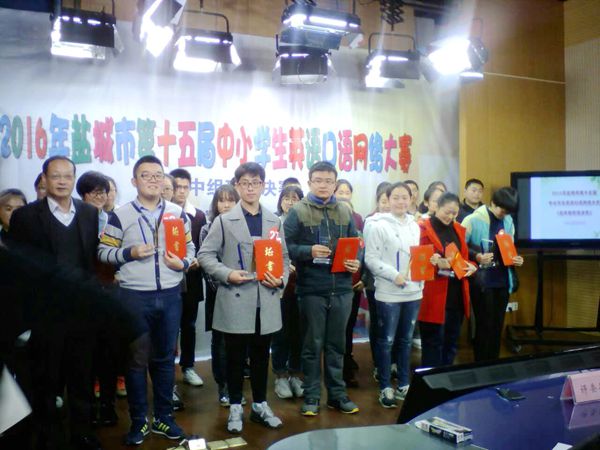 13日上午,現場決賽以“同題演講”形式在江蘇省鹽城中學舉行。第一環節:即興演講,演講時間100秒;第二環節:即問即答,答題時間120秒。根據現場專家評委的打分,決出特等獎和一等獎。比賽中,樊宇航同學的精彩演講博得專家評委和同場競賽學生的滿場掌聲,最終獲得特等獎第一名殊榮!以他領銜的鹽城市代表隊將參加本月19—20日在南京舉行的“領航杯”江蘇省中學生英語口語電視比賽。東中另有5人獲得一等獎。