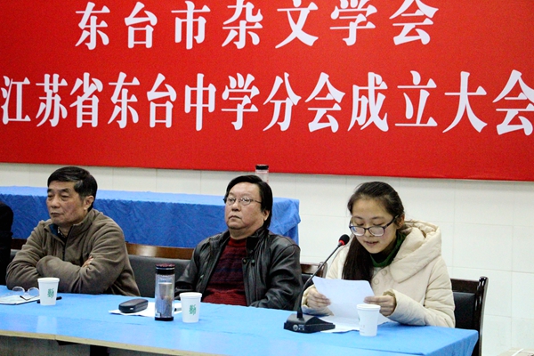 根據市雜文學會的安排,校“星光文學社”主編胥照方任分會會長,周鶴風為副會長兼常務會長,艾雨華為副會長。“成立雜文學會東中分會,就是更好地實踐學校‘另起一行’的辦學理念,讓學生在另一舞臺,別樣的天地找到成功的感覺。在一所中學成立雜文學會,這在全省乃至全國都是第一家。”省雜文學會副會長、中國作協會員朱兆龍如是說。(胥照芳)