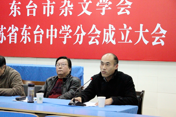 為進一步培植校園文學新苗,促進文學新人更好更快地成長。東臺市雜文學會江蘇省東臺中學分會宣告成立。在學校黨委、校長鄒施凱到會表示祝賀并發表了熱情洋溢的講話。