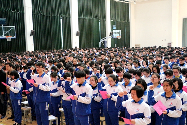 儀式上,鄒施凱向全體高三師生發出吶喊: