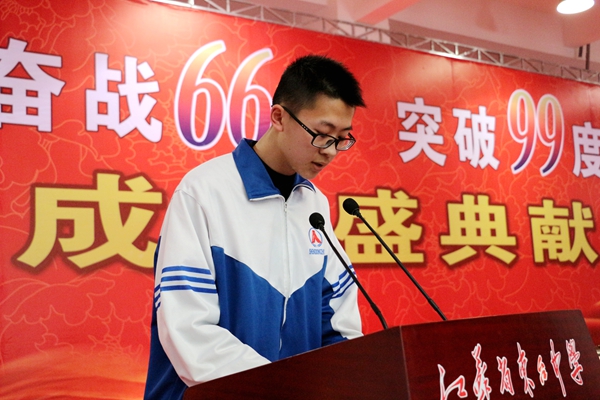 他說,十二年功名塵與土,九千里路云和月!奮戰66天,突破99度,是我們的期盼!命運之神從來不會垂青消極的等待,只有品嘗“勤能煮海”的千般痛苦,才能體味“進可登天”的一夢成真!