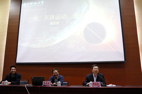 校長、黨委書記鄒施凱對夏志宏教授嚴謹、執著的治學精神十分推崇,對他本次深入淺出的講學十分感謝。鄒施凱指出,這次科普講學感性上充滿趣味,多故事、多案例、多事實,讓我們對數學、天體運動等,增添了濃厚的興趣;理性上充滿思考,眾多科學家從事的理論研究、實踐探索讓我們感動很深,一個科學家要取得成就,在專業掘進中越來越細,近乎“癡情”,靈感是一方面,更重要的是始終不渝;前景上充滿期待,特別是夏教授在數學、天體、混沌等方面的研究,都是目前、未來社會發展相當重要、尤為引人關注的,涉及到世界科學的發展走向。他說,通過今天的講座,不僅對夏教授所研究的領域而且對很多自然科學都加深了認識。在座的不少同學將來能立志報考南方科技大學,做夏教授的學生、研究生、博士生,是我們美好的期待。