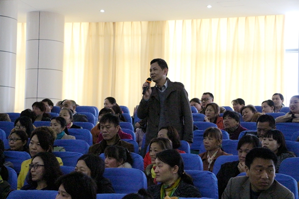 出席今天活動的有《家教周報》副總編向蕾女士,市關工委盧冬紅副主任,東臺市教育局王勁松局長和我校鄒施凱校長。副校長謝謙云主持。局相關科室和部分學校分管德育的負責同志及我校高三年級數十位班主任聆聽了講座。