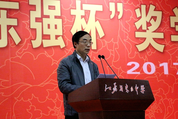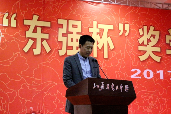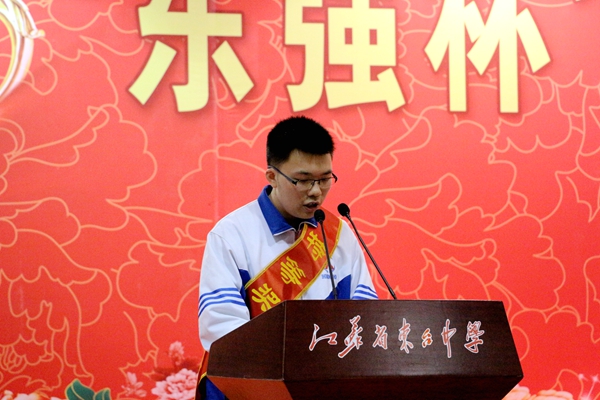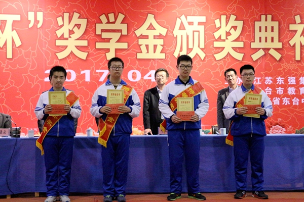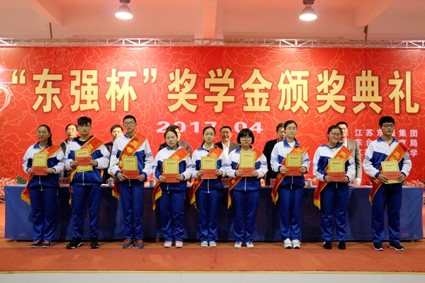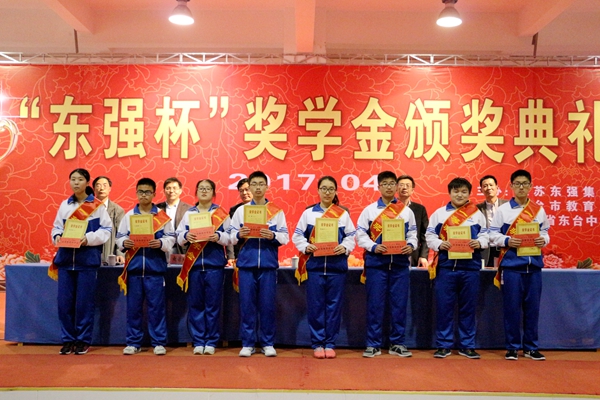 在熱烈的掌聲中,“東強杯”獎學金捐資方江蘇東強集團董事長王子純在講話中表示,東強公司黨委會、董事會已經決定,從今年起,每年捐資10萬元向東中優秀學生發放獎學金。激勵東中學子更好地學習進步,為經濟社會發展夯實德育基礎。他與同學們分享了近期赴日本考察的深刻體會和對稻盛和夫名言的解讀。尤其篤信,人生和工作的結果=思考方式?熱情?能力。生命因奮斗而精彩,只要朝著自己的目標前進,整個世界都會為你讓路。他勉勵同學們,始終以至善、至極的追求,磨練自己的意志、鑄造自己的形象、成就自己的精彩人生。