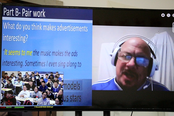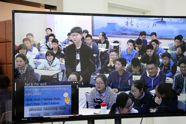 在學(xué)校錄播教室技術(shù)支撐下,視頻流暢、音頻清晰,互動(dòng)酣暢、反饋及時(shí)。外教適中的語(yǔ)速、純正的語(yǔ)音,極大地調(diào)動(dòng)了學(xué)生口語(yǔ)、聽(tīng)力訓(xùn)練的熱情,學(xué)生參與全面、高效。