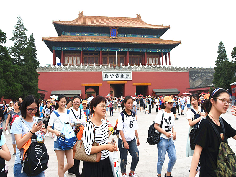 7月25日清晨剛下火車,便馬不停蹄地來到天安門廣場。領略了巍峨大氣的人民英雄紀念碑,瞻仰了莊嚴肅穆的毛主席紀念堂,感受了故宮不一樣的古色古香,恢弘磅礴,膜拜了中華文化的祠堂與祖廟——中國國家博物館,游覽了別致優雅的皇家園林——北海公園……第一天的行程時間被安排得滿滿當當,匆匆的腳步似乎映襯出大家共同的心聲:要以最快的速度融入北京的文化中,真正理解皇城根兒的氛圍與內涵,從深層次角度為夢想奠定根基!
