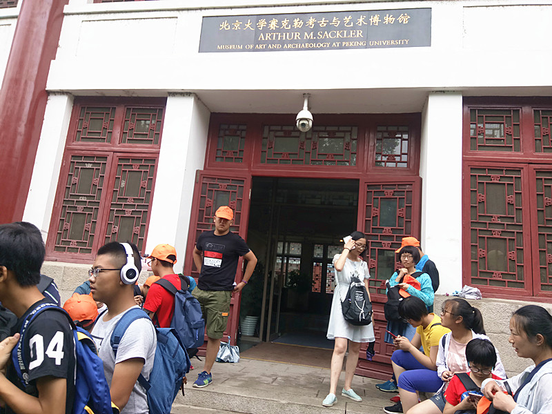 7月26日上午首都灰藍的天上飄著雨絲,落在皮膚上,涼得不像盛夏。按照時間約定大家來到北京大學的校園參觀學習,中文系陳教授接待并全程陪同。雨中漫步北大的校園,風韻尤其獨特。以映入眼簾的景象而言,北大并不是嚴謹整齊的現代樓房,而是設計中總有古色古香的味兒,檐牙高啄,重檐翼館,又添加了一些現代的元素,于是便自成一派。人行道旁樹木蔥蘢,青的逼人眼,大約是長在翰墨飄香的學府中,連精神都抖擻了幾分,笑意盈盈地迎接往來不絕的莘莘學子們。