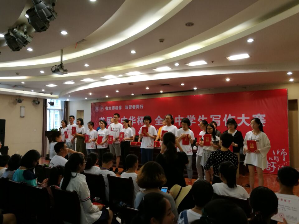 “胸中翻錦繡,筆下走龍蛇。”決賽中,東中選手與來(lái)自全國(guó)各中學(xué)的800余名選手展開了思如泉涌、才情酣暢的現(xiàn)場(chǎng)較量。最終,參賽的同學(xué)有9人獲得一等獎(jiǎng),12人獲得二等獎(jiǎng),1人獲得三等獎(jiǎng)。大賽共100多名選手獲獎(jiǎng),這意味著有近700名同學(xué)鎩羽而歸。毫無(wú)疑問,東中這一優(yōu)勝業(yè)績(jī),在各支參賽隊(duì)中獨(dú)樹一幟!這一絕佳表現(xiàn),引起組委會(huì)、各高校的強(qiáng)烈關(guān)注。同行們紛紛與東中師生添加微信、QQ朋友,表達(dá)出作文教學(xué)和寫作經(jīng)驗(yàn)深度交流的急切愿望。