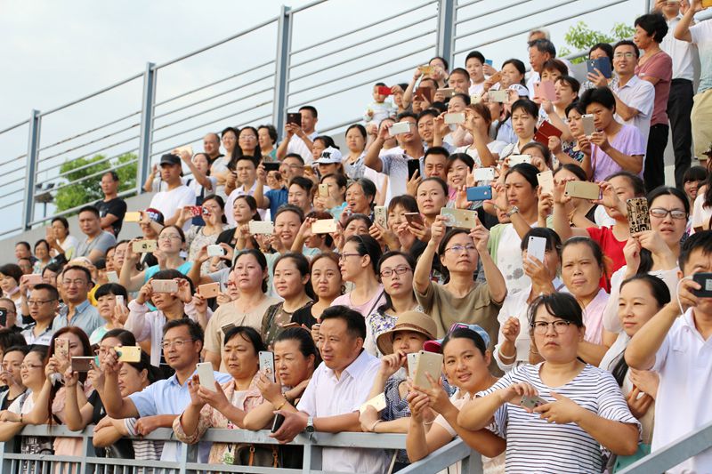 在國旗護(hù)衛(wèi)隊引領(lǐng)下,各班方陣步履矯健,士氣昂揚(yáng)。18個方陣猶如18塊巨幅迷彩,英姿勃發(fā)!當(dāng)同學(xué)們以整齊劃一的行進(jìn),依次通過主席臺時,獲得了領(lǐng)導(dǎo)們陣陣鼓掌。優(yōu)秀營隊,來自高一(1)班、(4)班的全體同學(xué)向大會分別表演了隊列變換等軍訓(xùn)科目,他們規(guī)范的行立起蹲、漂亮的隊型變換,再次博得滿場喝彩。看臺兩側(cè)家長紛紛舉起手機(jī),盡情搶拍,留下了一個個精彩瞬間,不時發(fā)出驚訝與贊嘆。