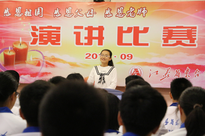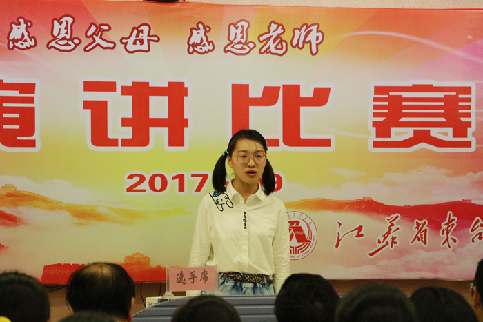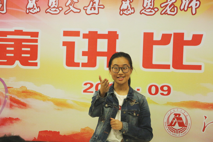 “感恩,僅僅只有23筆,簡單的筆畫卻構成了一個我們可能一生都回報不清的詞語””“感謝父母,賦予我生命,你養我長大,我陪你變老” “生我者父母,養我者祖國。感恩祖國吧!不能由于社會還存在不公,就否定她曾經的努力付出” “高山感恩于土壤,方能成其雄偉;大海感恩于細流,方能就其博大” “當我們抱怨學習壓力大時,有沒有設身處地地考慮過老師們投入的巨大心血”……由年級選拔推薦的10名選手以飽滿的感情,真摯的語言從多個角度述說著對國家、對父母、對老師的感恩之情。縱觀整場比賽,演講的內容既有“肩負民族復興擔當”的大情懷,更有“發現生命中溪水長流”的小溫暖。《十月放歌》《感恩祖國》追溯革命歷史,感恩國家的強盛為我們帶來了繁榮安定的生活;《讓感恩的花開在日常》,《花田半角》關注身邊小事,感恩父母之愛。選手們的精彩演講贏得了聽眾們的陣陣掌聲。